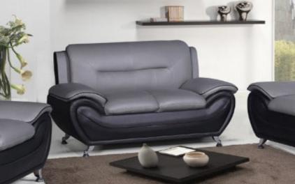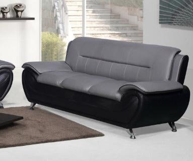 "FELIX" Black + Grey, Sofa, Love Seat or Chair, Black, Faux Leather, Chrome Legs