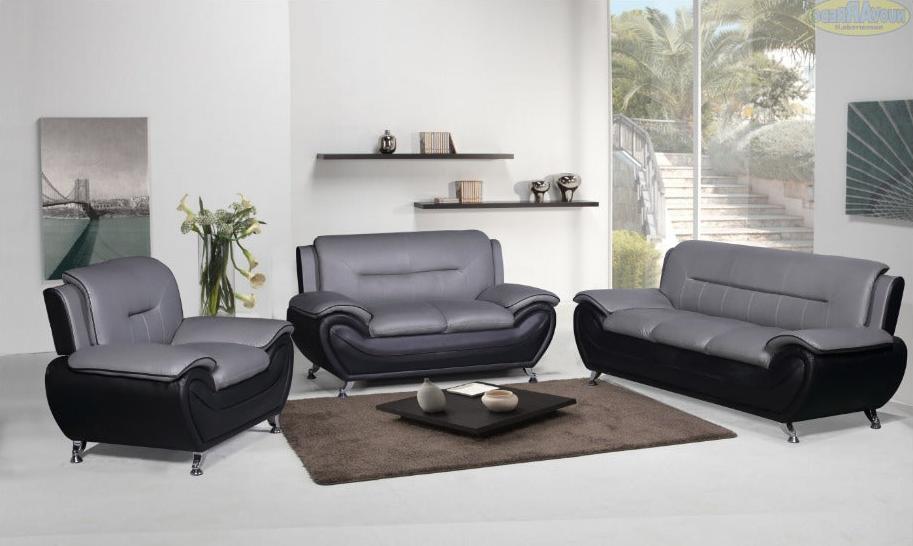 BOL "FELIX" Black + Grey, Sofa, Love Seat or Chair, Black, Faux Leather, Chrome Legs