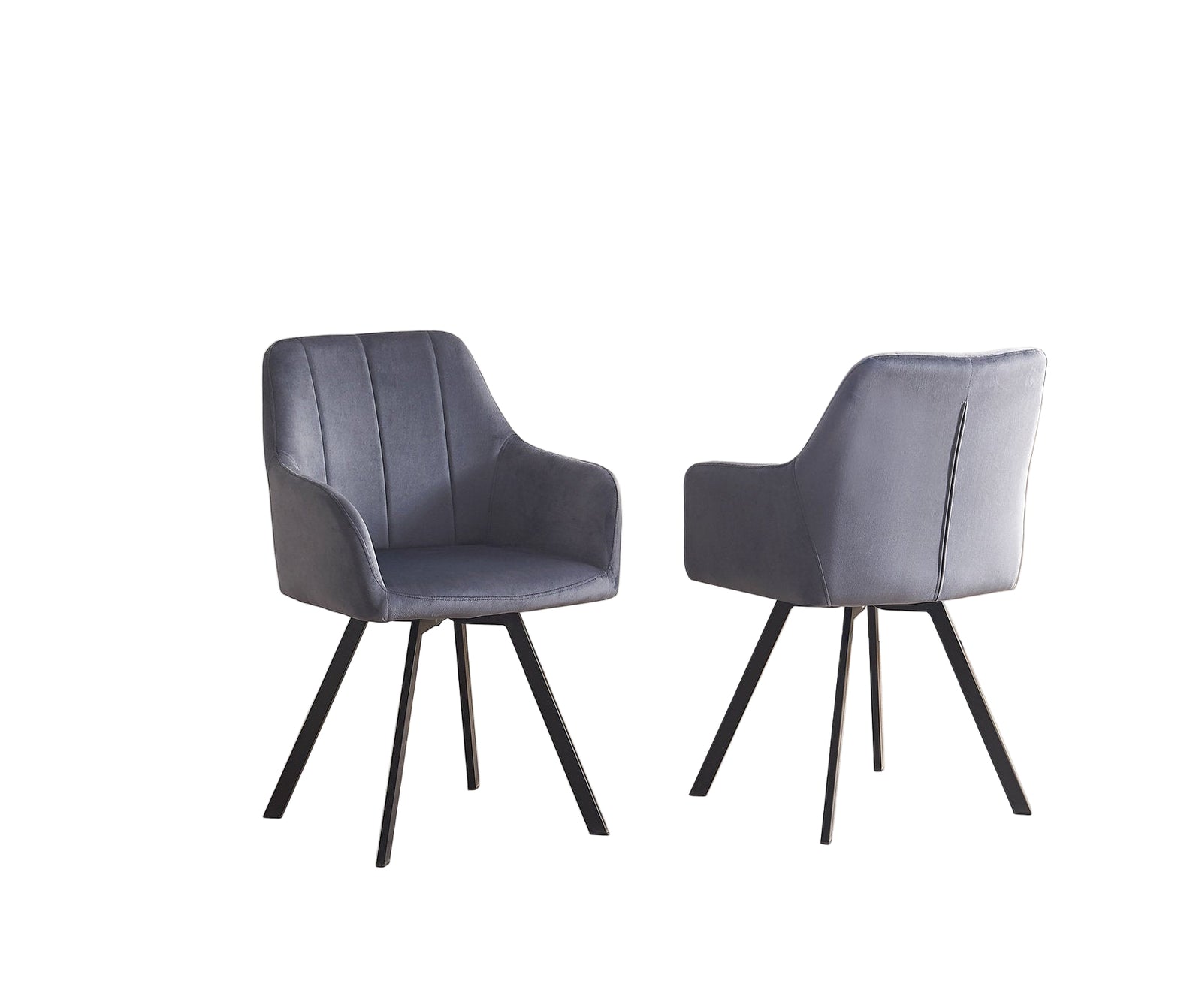 C-1412 Dining Chair, Dark Grey, Velvet, 360 Degree Swivel, Vertical Stitching on Back, Set of 2