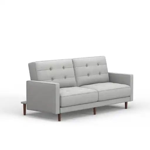 "CYRIS" Klick Klack, 81" Wide, Light Grey Fabric, Split Back, Button Tufting, Futon