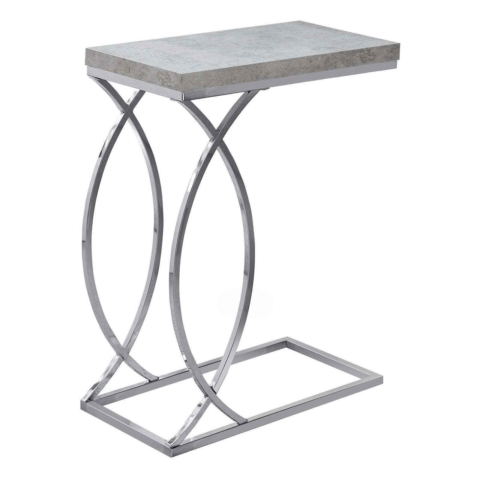 MN-613185 Accent Table, C-Shaped, End, Side, Snack, Living Room, Bedroom, Metal Legs, Laminate, Grey Cement Look, Chrome, Contemporary, Modern