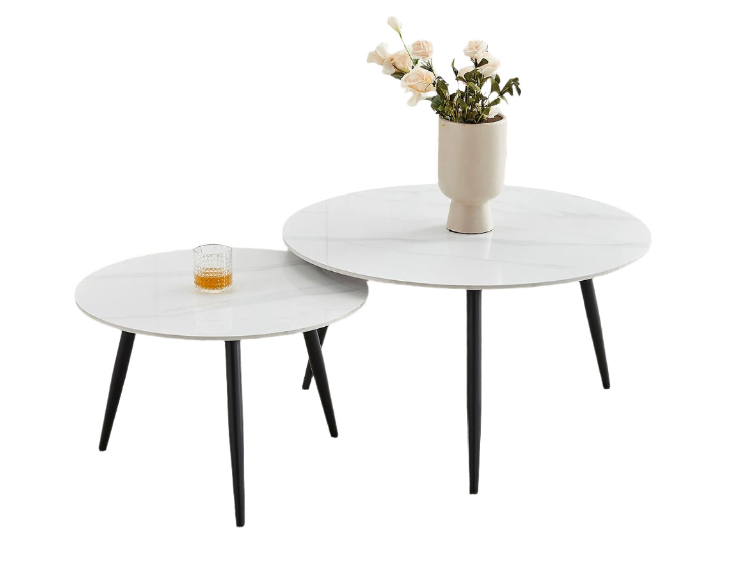 IF-2210 Coffee Table, Nested, 2Pc Set, White Sintered Stone Top, 24" & 36" Circular Diameter Tables.