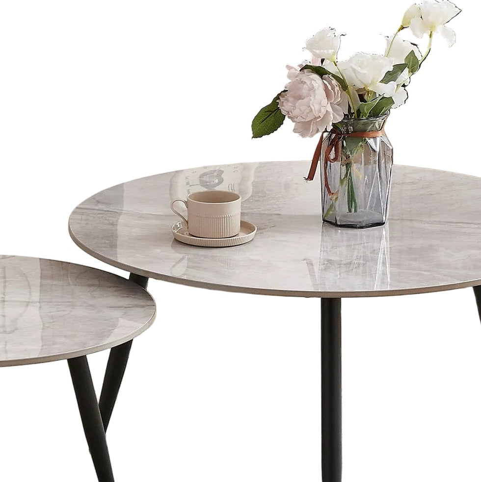 IF-2211 Coffee Table Set, 2Pc, Nested, Armani Grey Sintered Stone Marble Top, Black Legs