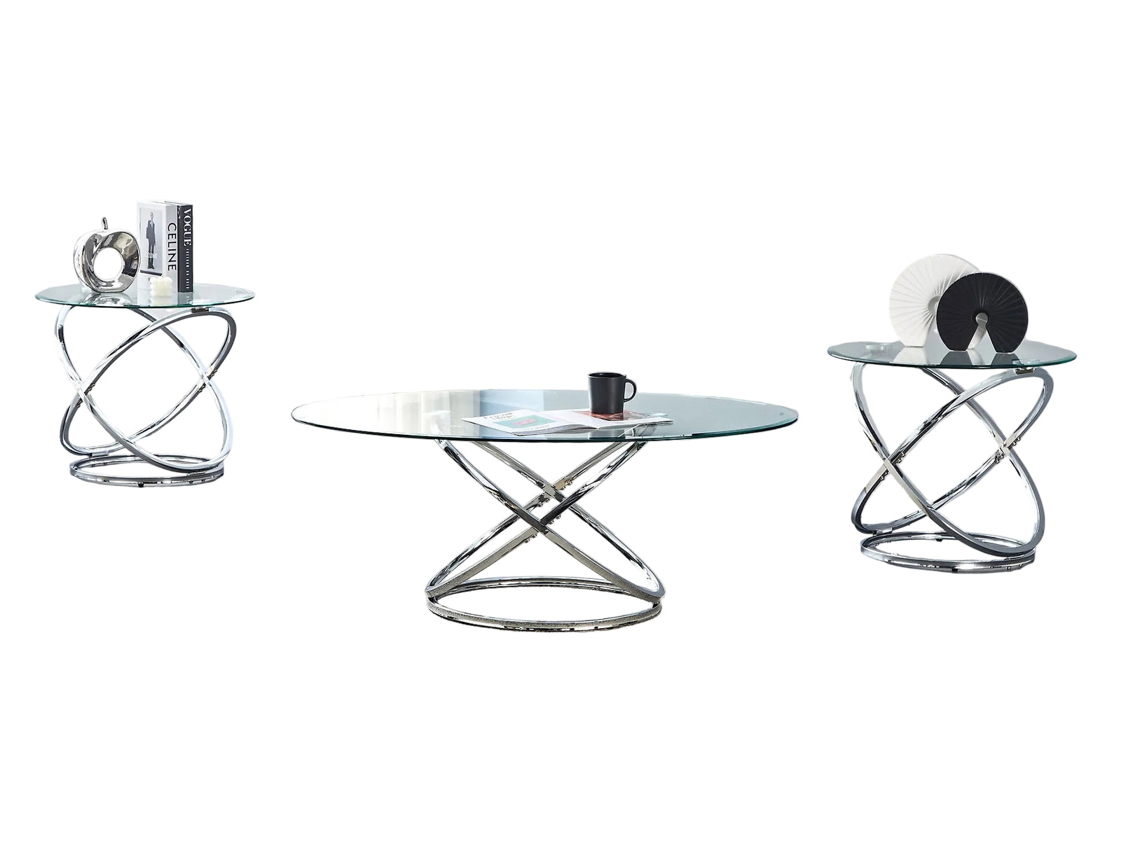 IF-2640 Coffee Table Set, 3Pc, Chrome Base, 3Pc, Oval and Round Clear Glass Top
