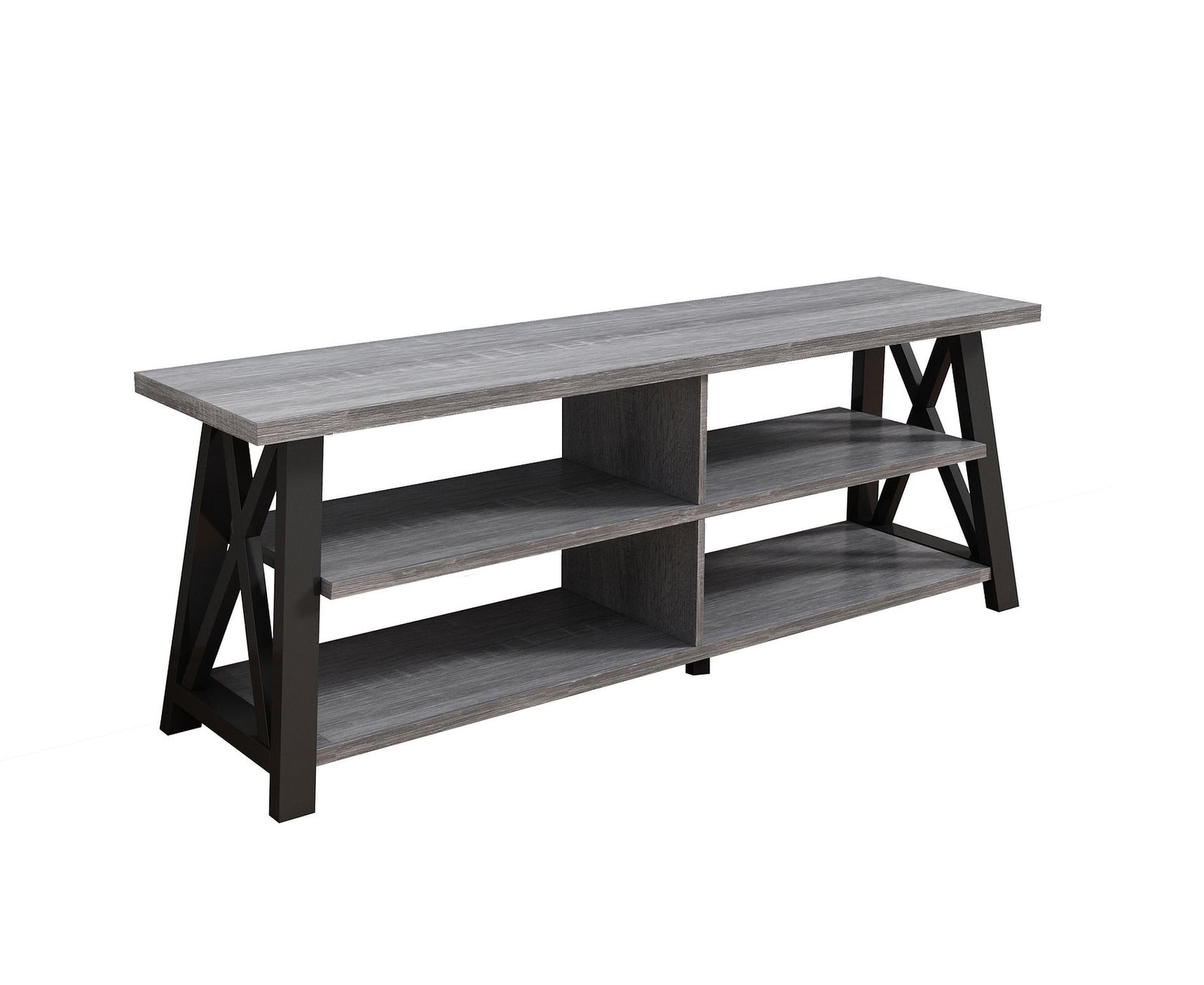 IF-5010 T.V Stand, 71" Wide, Black and Distressed Grey Finish, X-Frame Side Panels