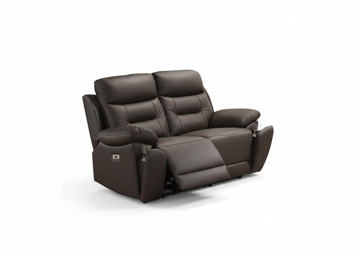 This loveseat power recliner ensemble delivers sophisticated comfort with contemporary styling.  It's upholstered in rich chocolate brown genuine leather/match, and is equipped with independent power recline mechanisms, integrated USB charging ports for device convenience, and discreetly positioned cup holders. Generously proportioned seats showcase plush cushioning and supportive armrests, creating an inviting focal point for any living space. Perfect for those seeking both luxury and modern functionality in their home entertainment area.