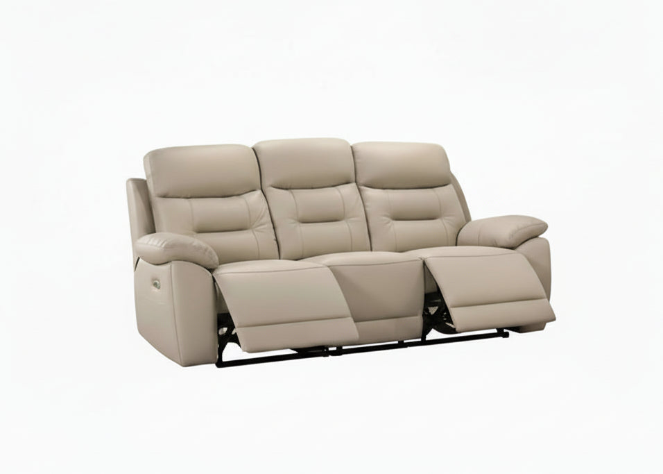 IF-8162 Power Recliner Sofa, Soft Cream Beige, Genuine Leather/Match, USB Charging, Hidden Cup Holders