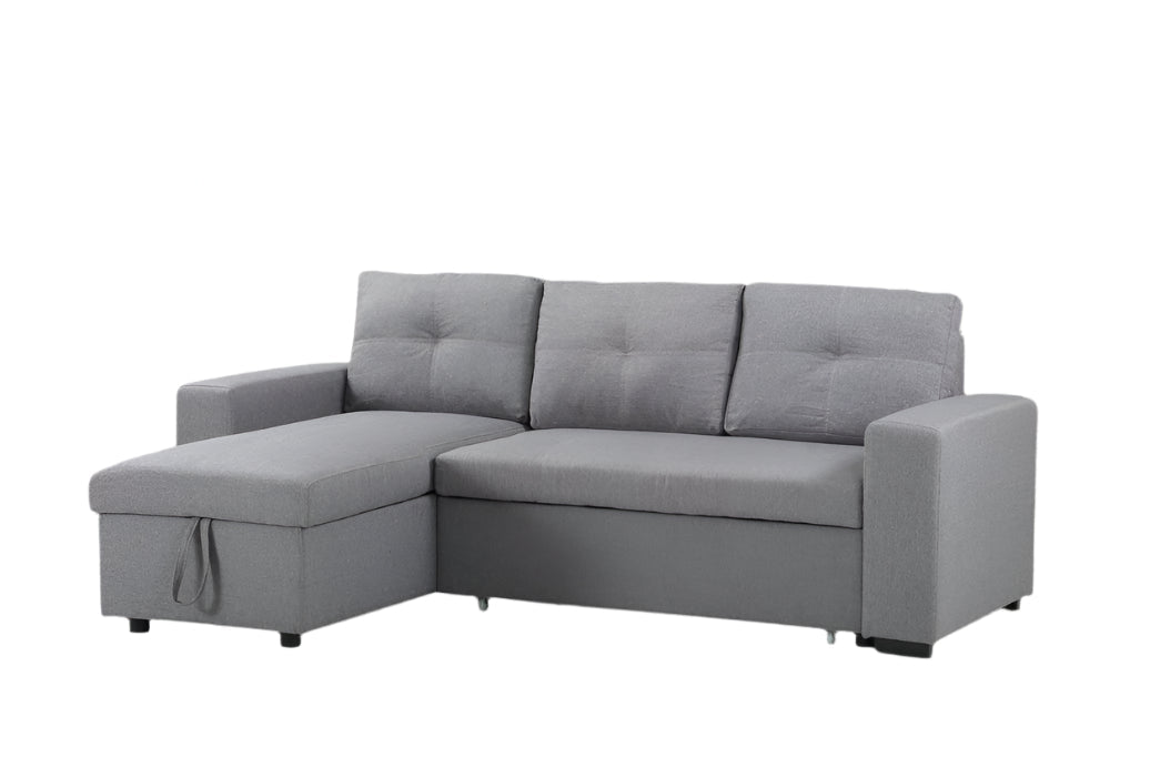 IF-9031 Sectional Sofa Bed, 88" Wide, Grey, Fabric, Reversible Chaise, Lift-Up Storage Compartment