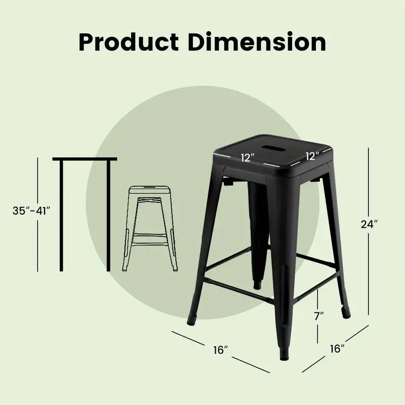 JL Metal Barstool, Black, Matte Finish, 24" High, Sold as Single Barstools, Order as many as you need.