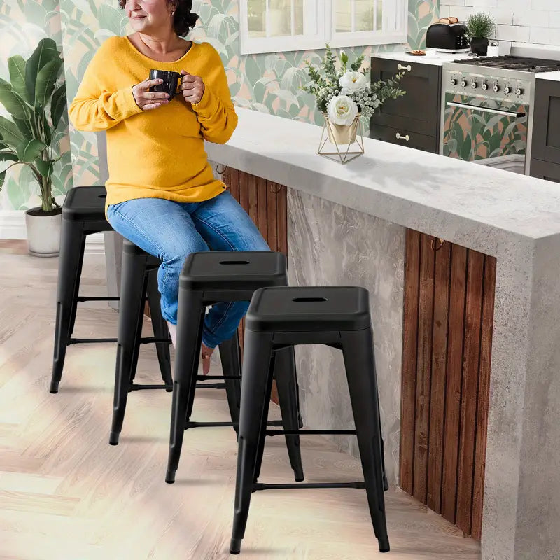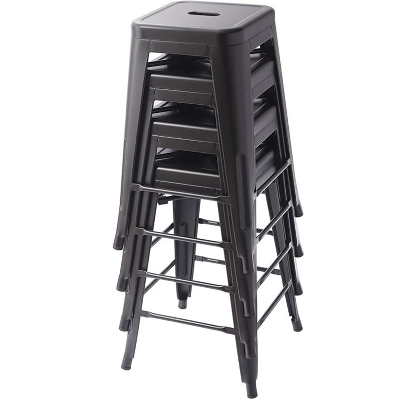 JL Metal Barstool, Black, Matte Finish, 24" High, Stackable, Sold Each