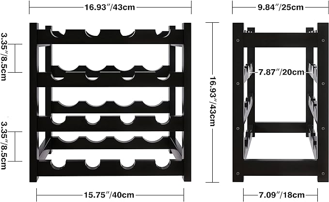 JL Wine Rack, Black, Free Standing, 4 Layer