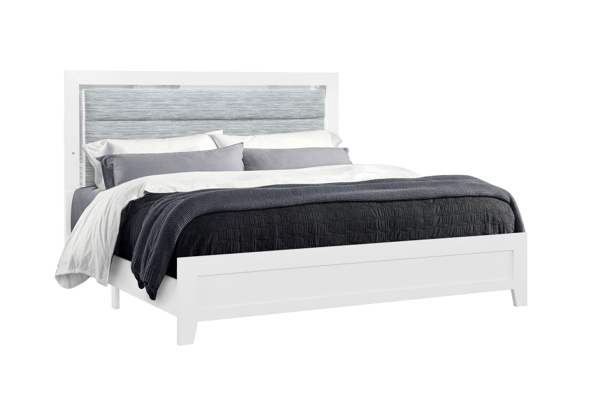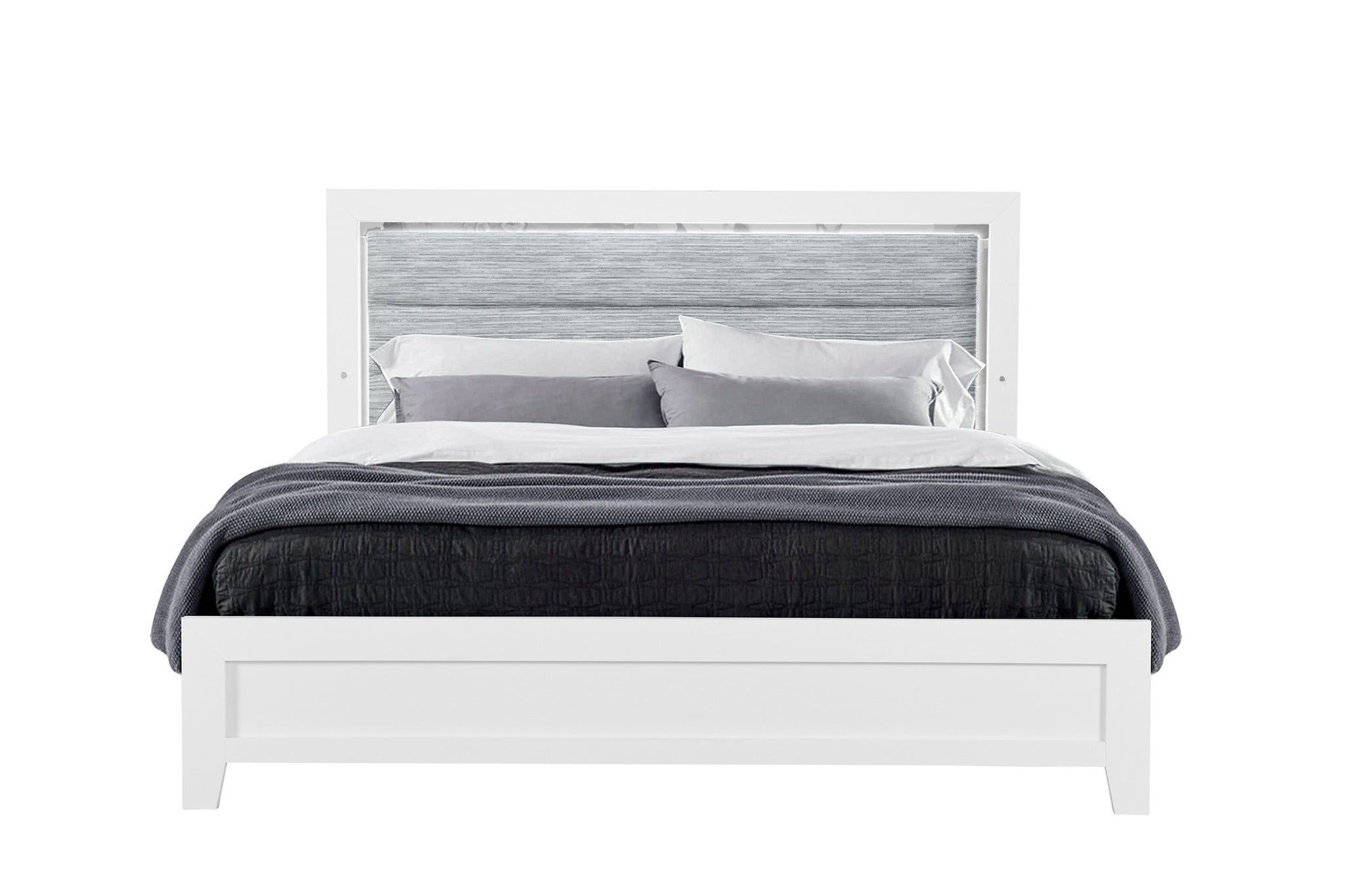 "LUCIA" Bed, White, Upholstered Headboard, LED Accent Lighting
