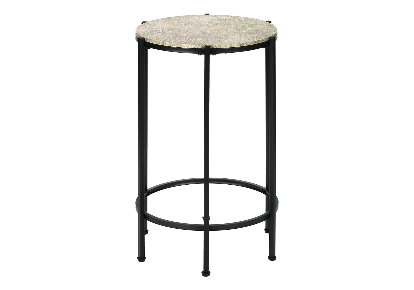 MN-933758 Accent Table, End, Round, Side Table, Small, Lamp, Living Room, Bedroom, Nightstand, Cream Stone Laminate, Black Metal, Contemporary