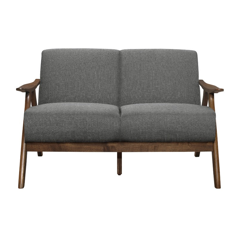 MZ-1138 Love Seat, Grey, Linen Fabric, Walnut Wood Frame