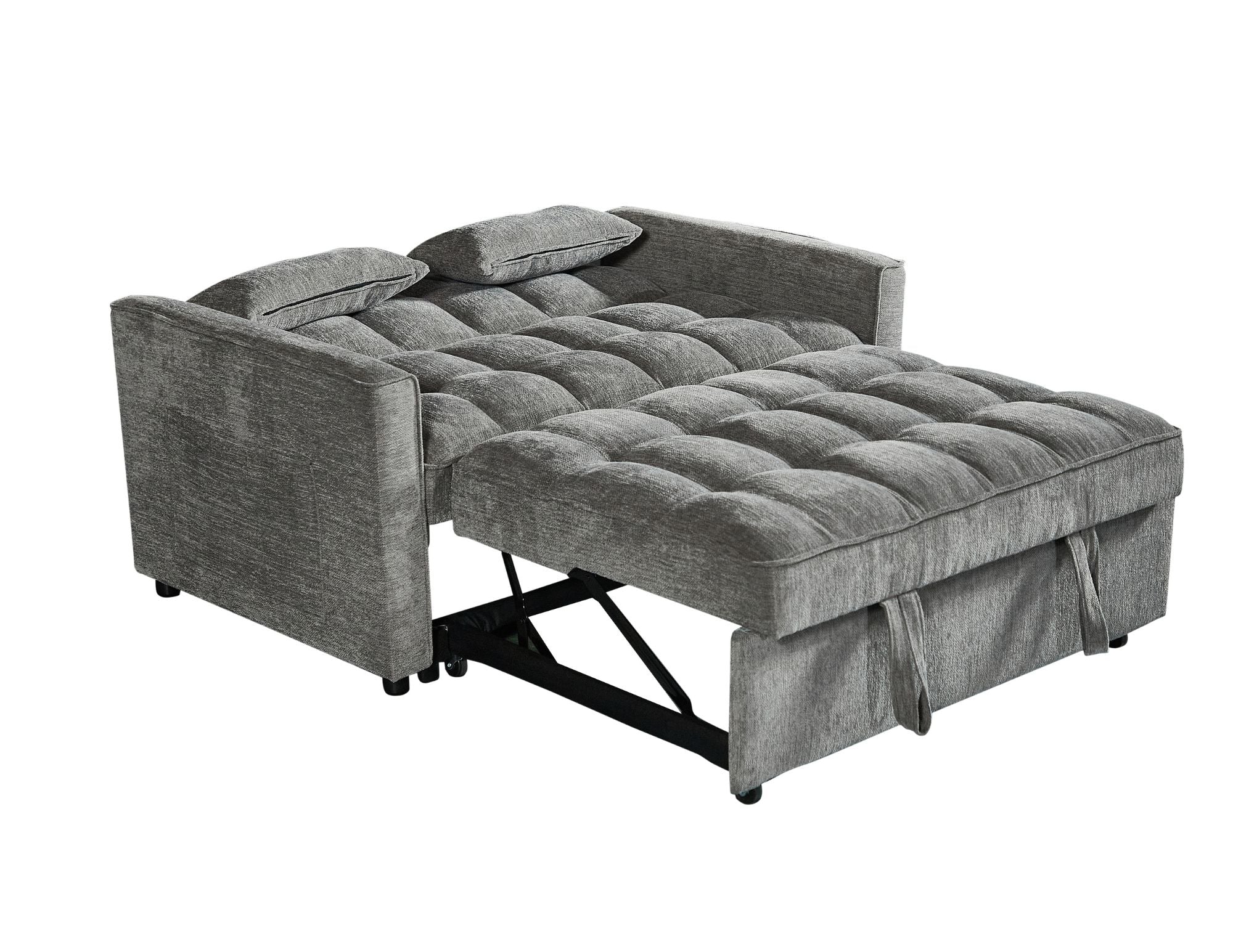 "VANESSA" Couch, Grey Chenille Fabric, 56" Wide, Condo Size, Folds into a Bed