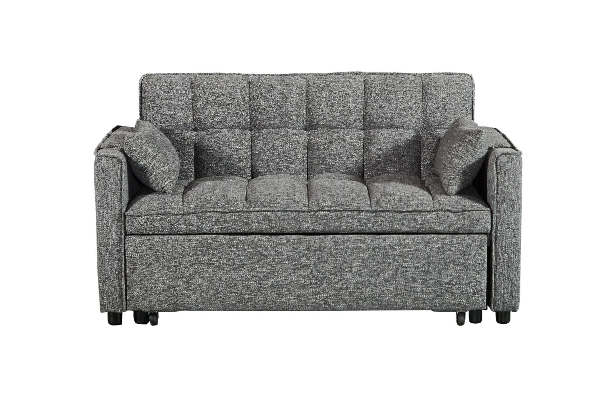 "VANESSA" Couch, Charcoal Chenille Fabric, 56" Wide, Condo Size, Folds into a Bed
